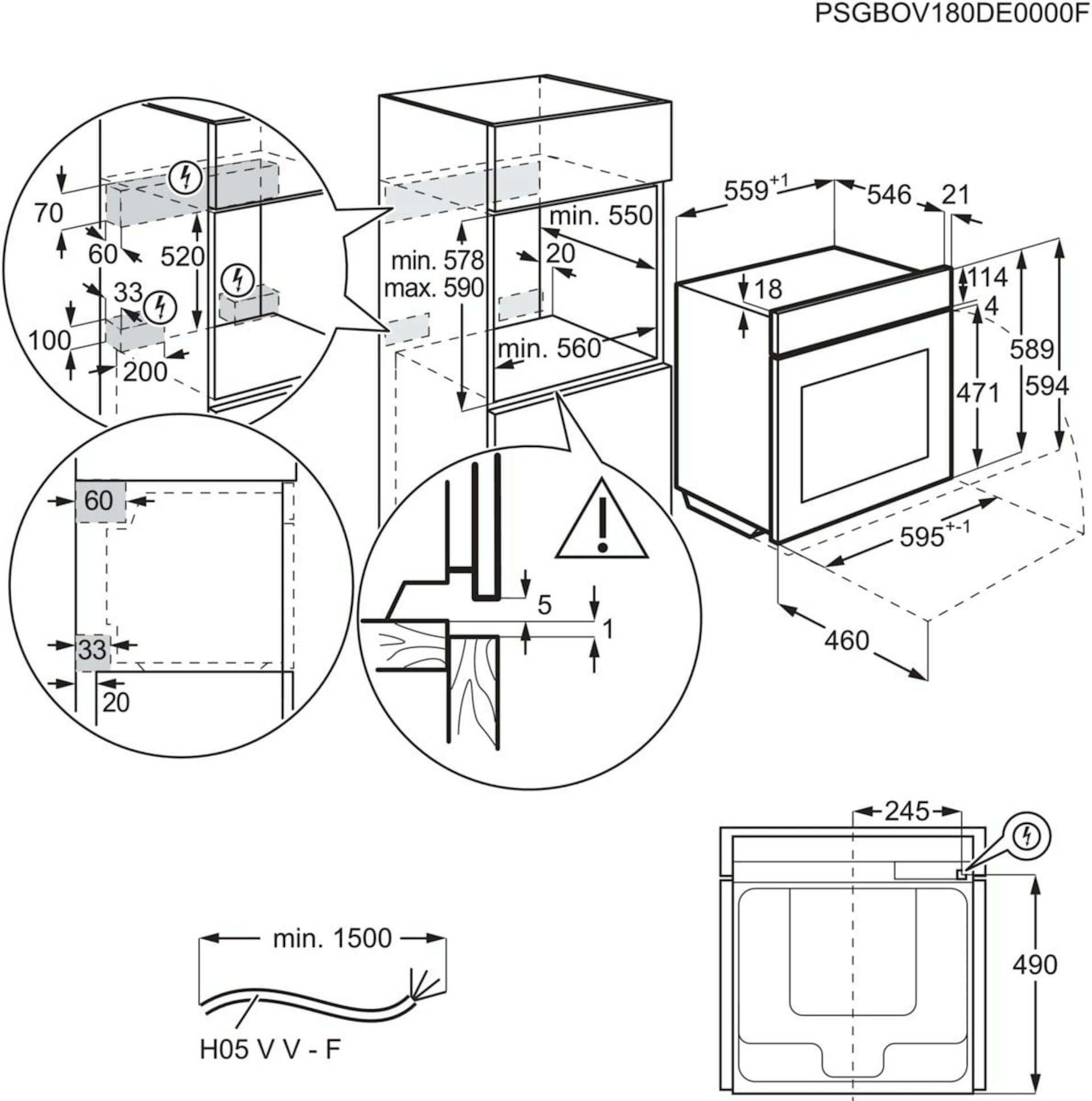 Inbouwmaten (h×b×d) 590 × 560 × 550 mm