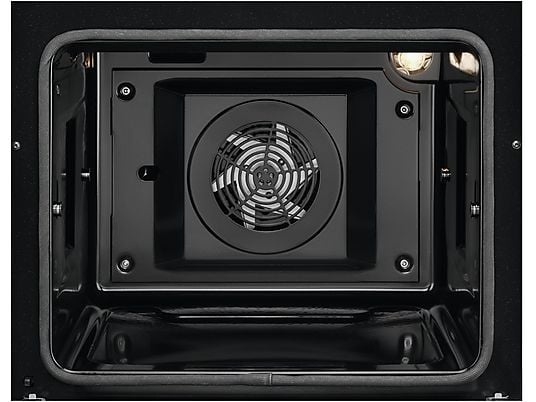 De heteluchtventilator verspreidt de warmte gelijkmatig door de oven. Hierdoor garen gerechten sneller en perfect egaal.