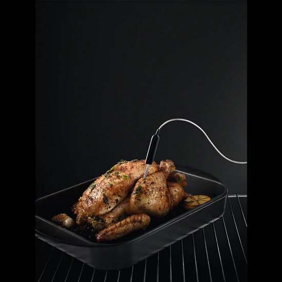 Dankzij de voedingssensor van deze oven kunt u de kerntemperatuur in het midden van uw gerecht tijdens het kookproces meten. Zo krijgt u altijd weer perfecte resultaten.