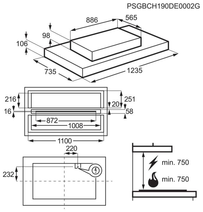 DCK0250HG | Plafondunit afzuigkap | 120 cm