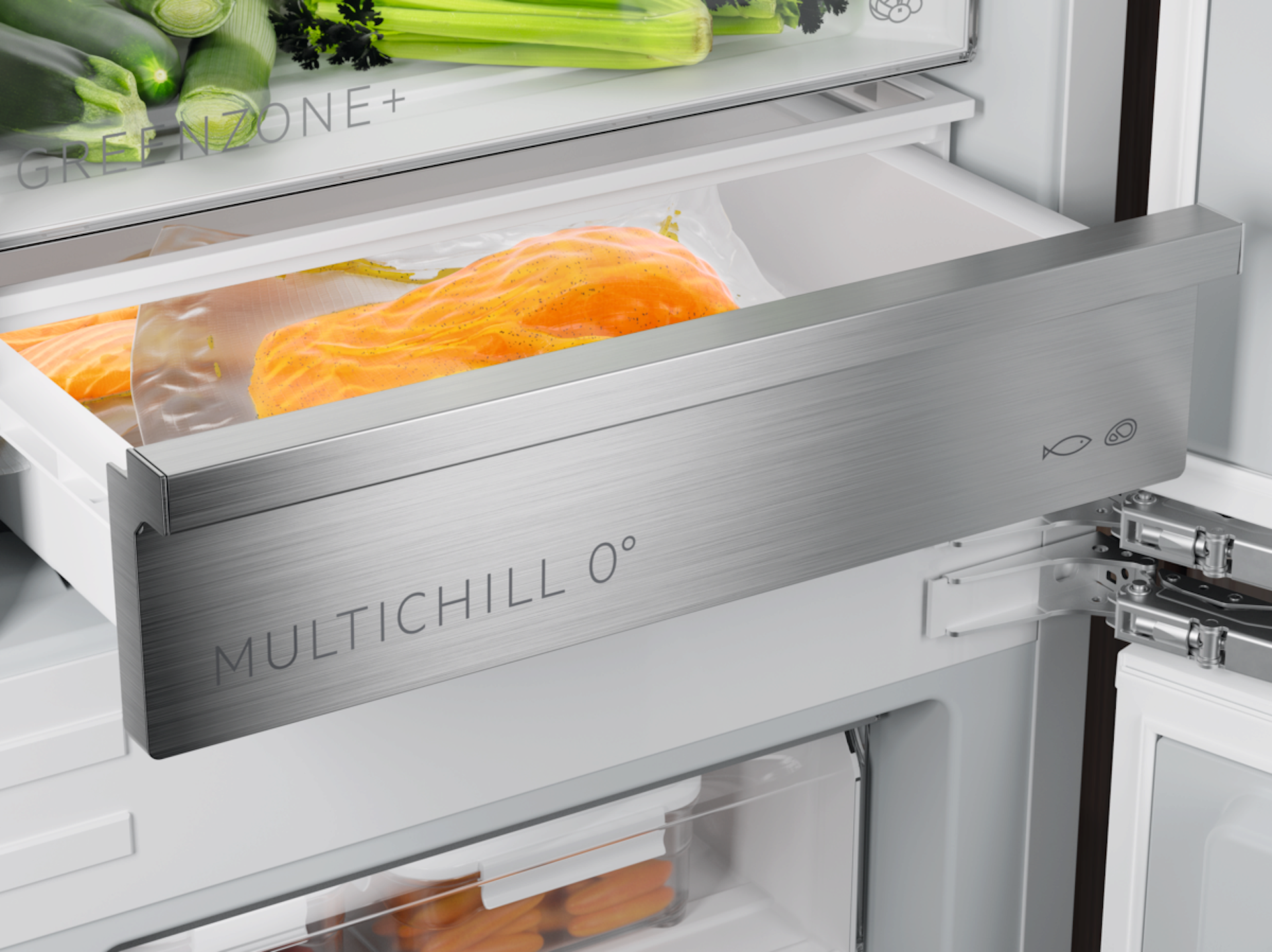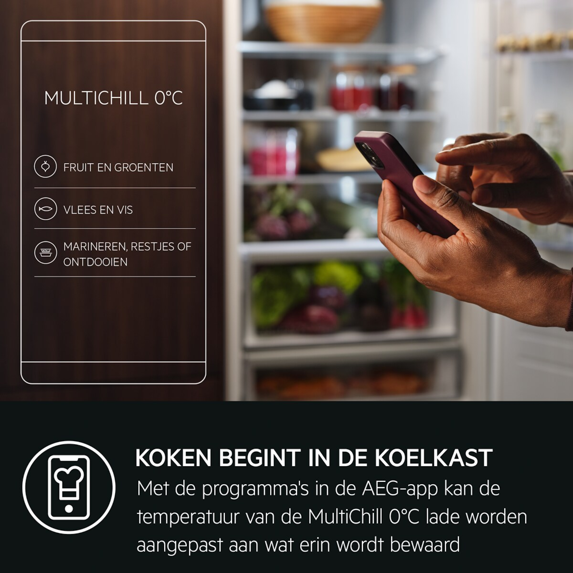 De aanpasbare MultiChill 0°C-lade geeft je de volledige controle met de regelbare temperatuuropties voor het bewaren van vlees en vis. Gebruik handige voedselprogramma’s via de app, zoals drankjes koelen, diepvrieswaren veilig ontdooien of kliekjes bewaren.