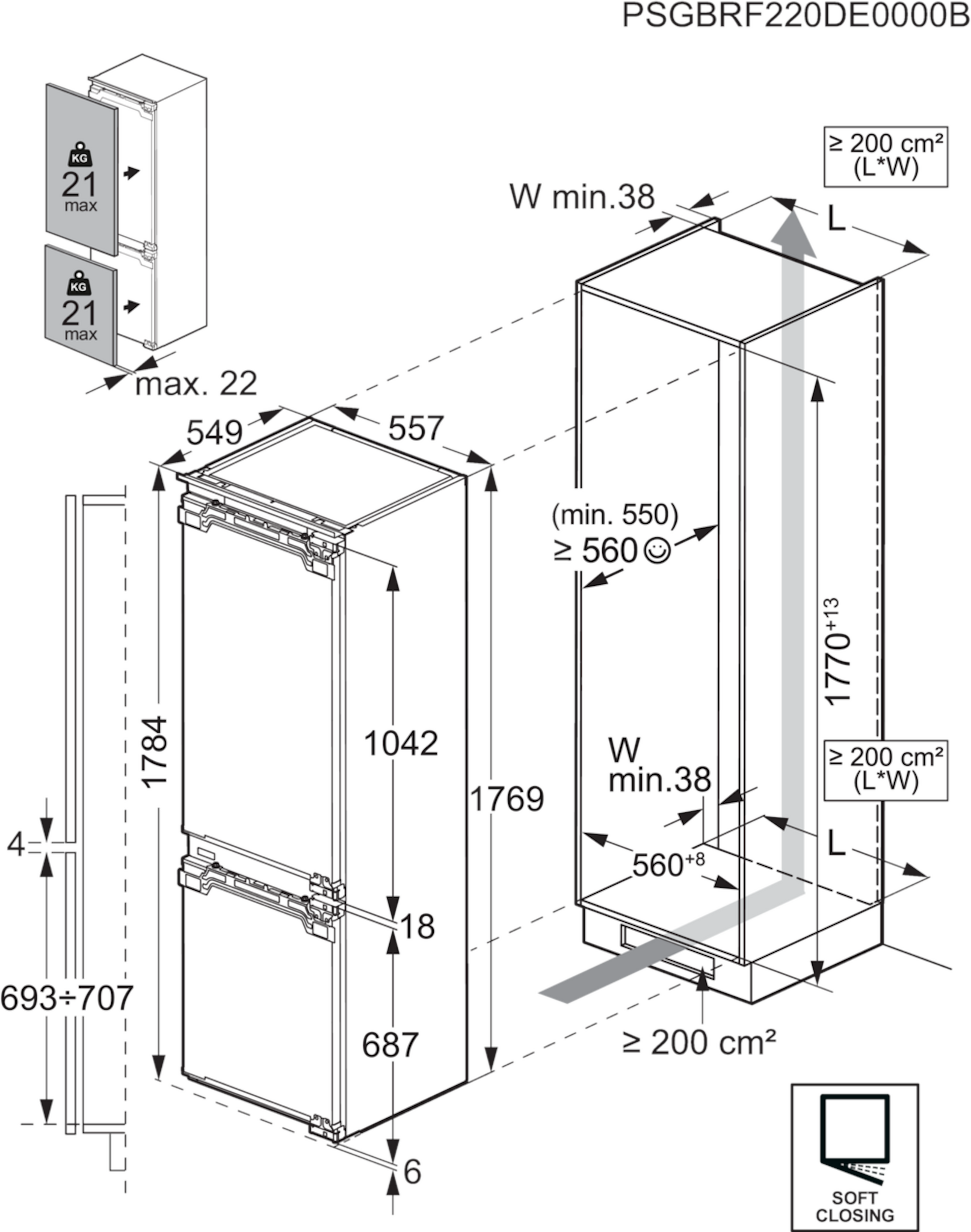 Inbouwmaten hxbxd (mm): 1780x560x550