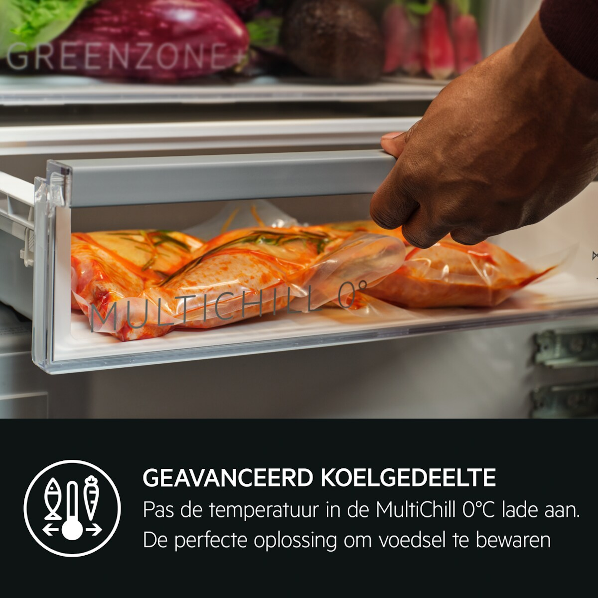 GreenZone+ haalt het teveel aan vocht weg en zorgt voor de juiste vochtigheidsgraad voor je groenten. Tot 95% van de vitamines blijft behouden na 11 dagen doordat fruit en groenten door de juiste vochtigheidsgraad worden beschermd.
