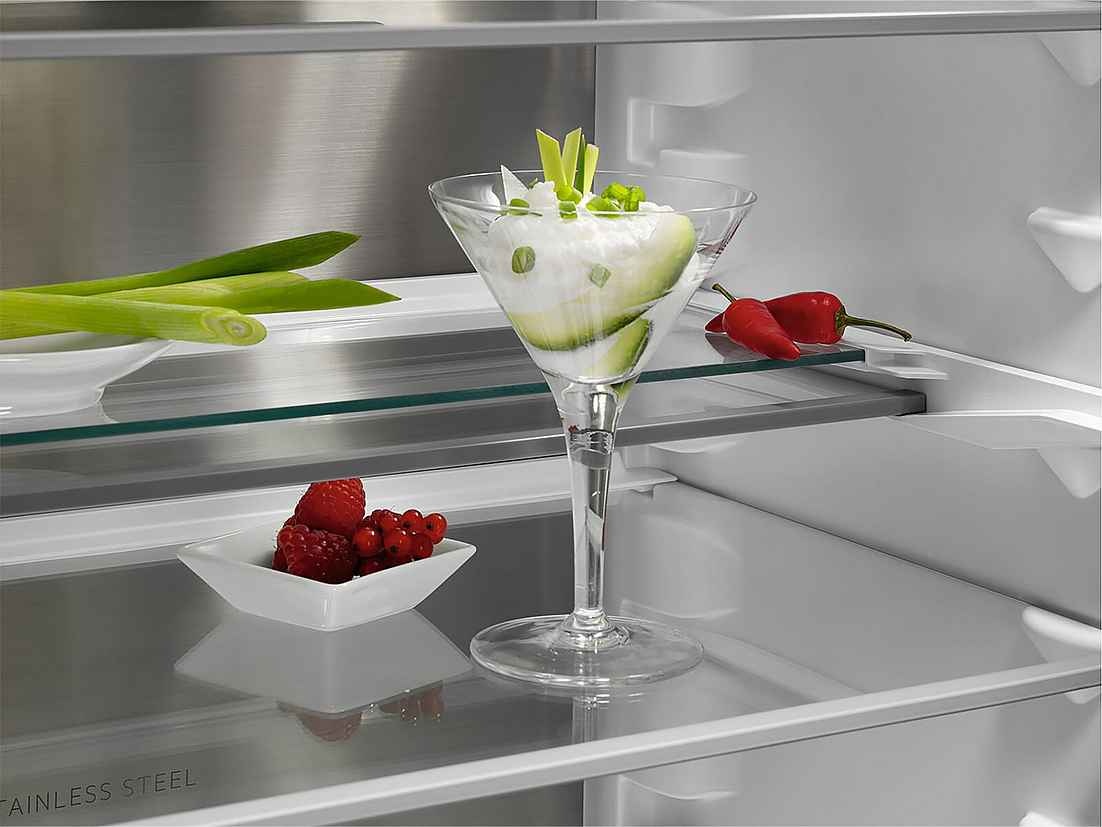 Het geavanceerde luchtcirculatiesysteem verdeelt de kou gelijkmatig door de hele koelkast. Dankzij de RVS achterwand wordt de temperatuur na het openen sneller hersteld. Resultaat: minder voedselverspilling en langere versheid.