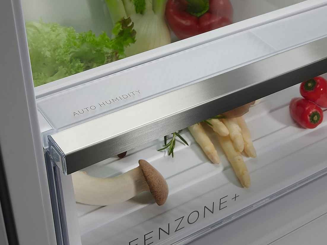 De slimme vochtregulatie in de GreenZone+ lade houdt groente en fruit langer vers en behoudt tot wel 95% van de vitamines. Minder weggooien, meer smaak.