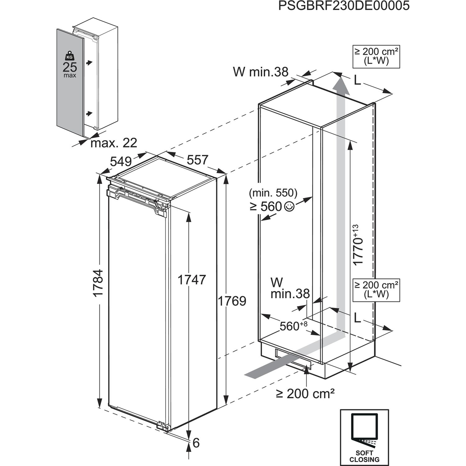 Inbouwmaten (hxbxd): 1780x560x550 mm