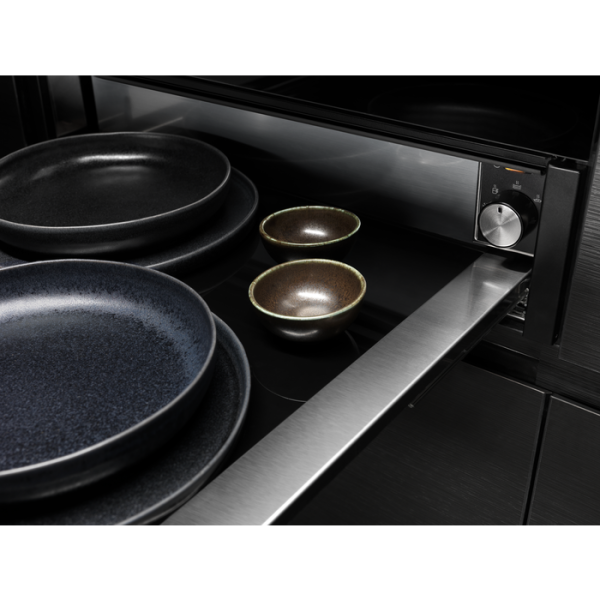 Dankzij het stijlvolle ontwerp sluit de opwarmlade naadloos aan bij de rest van uw keuken en past hij perfect bij uw AEG-oven.