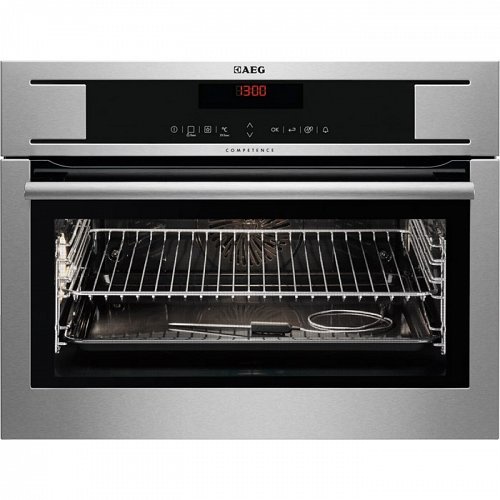 AEG KP8404001M solo inbouw oven 45 cm Omschrijving Multifunctionele heteluchtoven Energie efficiëntieklasse A MaxiTray™ bakplaat: 20% groter dan een standaard plaat Touch Control bediening Kerntemperatuursensor Voorgeprogrammeerde recepten Geheugenfunctie voor vaak gebruikte instellingen Kinderbeveiliging Easy-to-clean email Vlekvrij roestvrij staal Snelopwarmfunctie Technische gegevens Model Inbouw Type oven Hetelucht oven Netto oveninhoud (liter) 44 Lengte aansluitsnoer (m) 1.5 Aansluitwaarde (Watt) 3000 Kleur vingervlekvrij roestvrij staal Inbouwmaten hxbxd (mm) 450x560x550 Afmetingen hxbxd (mm) 455x594x567 De hoogste normen voor een schone oven Maak kennis met Pyroluxe®Plus. Dit systeem maakt as van alle etensresten zodat deze gemakkelijk kunnen worden weggeveegd. Betere prestaties en efficiënter energieverbruik Het slimme ThermiC°Air-convectiesysteem zorgt ervoor dat de warme lucht gelijkmatig in de ovenruimte circuleert voor een sneller en energiezuiniger bereidingsproces. Alle vereiste informatie op deze geavanceerde interface ProSight Plus is een geavanceerde gebruikersinterface dat een groot LCD-display met volledige tekst combineert met aanraakbediening. Het geeft de nodige informatie en 90 recepten weer Bak zelfs de grootste ladingen perfect In vergelijking met standaard bakplaten is deze extra grote MaxiTray™ bakplaat 20% groter, waardoor u nog grotere partijen heerlijk gebakken lekkers kunt bereiden. Vlees bereiden geheel naar uw eigen smaak Met de braadthermometer bent u in staat om voor elk vleesgerecht perfecte resultaten te bereiken. De oven wordt uitgeschakeld als het vlees een vooraf ingestelde temperatuur bereikt. Eigenschappen Algemene kenmerken Bouw Inbouw Categorie Solo oven Levertijd 1 t/m 3 werkdagen Merk AEG Ook bekend als Technische details Lengte snoer 1.5 m Gewicht en omvang Breedte 59.4 cm Diepte 46.7 cm Gewicht 30.8 kg Hoogte 45.5 cm Inbouw breedte 56 cm Inbouw diepte 55 cm Inbouw hoogte 45 cm nis hoogte 45 cm Energie AC invoer voltage 220-240 V Energie-efficiëntieklasse A+ Energieverbruik (conventioneel) 0.85 kWu Energieverbruik (geforceerde convectie) 0.59 kWu Netbelasting 3000 W Stroom 16 A Oven 1e oven binnen capaciteit 44 l Aantal ovens 1 Convectie koken Ja Grill Ja Grootte oven Middelmaat Koken Ja Ontdooifunctie Ja Snelle hitte Ja Soort oven elektrisch Thermostaat bereik (1e oven) 30 - 250 °C Totaal vermogen van de oven 3000 W Totale binnen capaciteit (ovens) 44 liter Vermogen van de 1e oven 3000 W Zelfreinigend Ja Ergonomie Kinderslot Ja Makkelijk schoon te maken Ja Restwarmte-indicator Ja Design Beeldscherm type LCD Controle positie Voorkant Deurscharnieren Neer Geïntegreerde klok Elektronisch Ingebouwd display Ja Kastontwerp Ingebouwd Kleur van het product RVS Soort bediening Touch