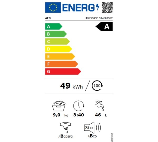 AEG LR7F75495 wasmachine 9 kg
