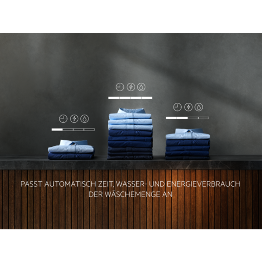 De sensoren van de ProSense® automatische beladingscontrole bepalen automatisch de hoeveelheid wasgoed voor een op maat gemaakt wasprogramma. Tijd-, water- en energieverbruik worden tot 40% verminderd*. Zo krijgt je wasgoed bij elke wasbeurt precies de juiste verzorging.
