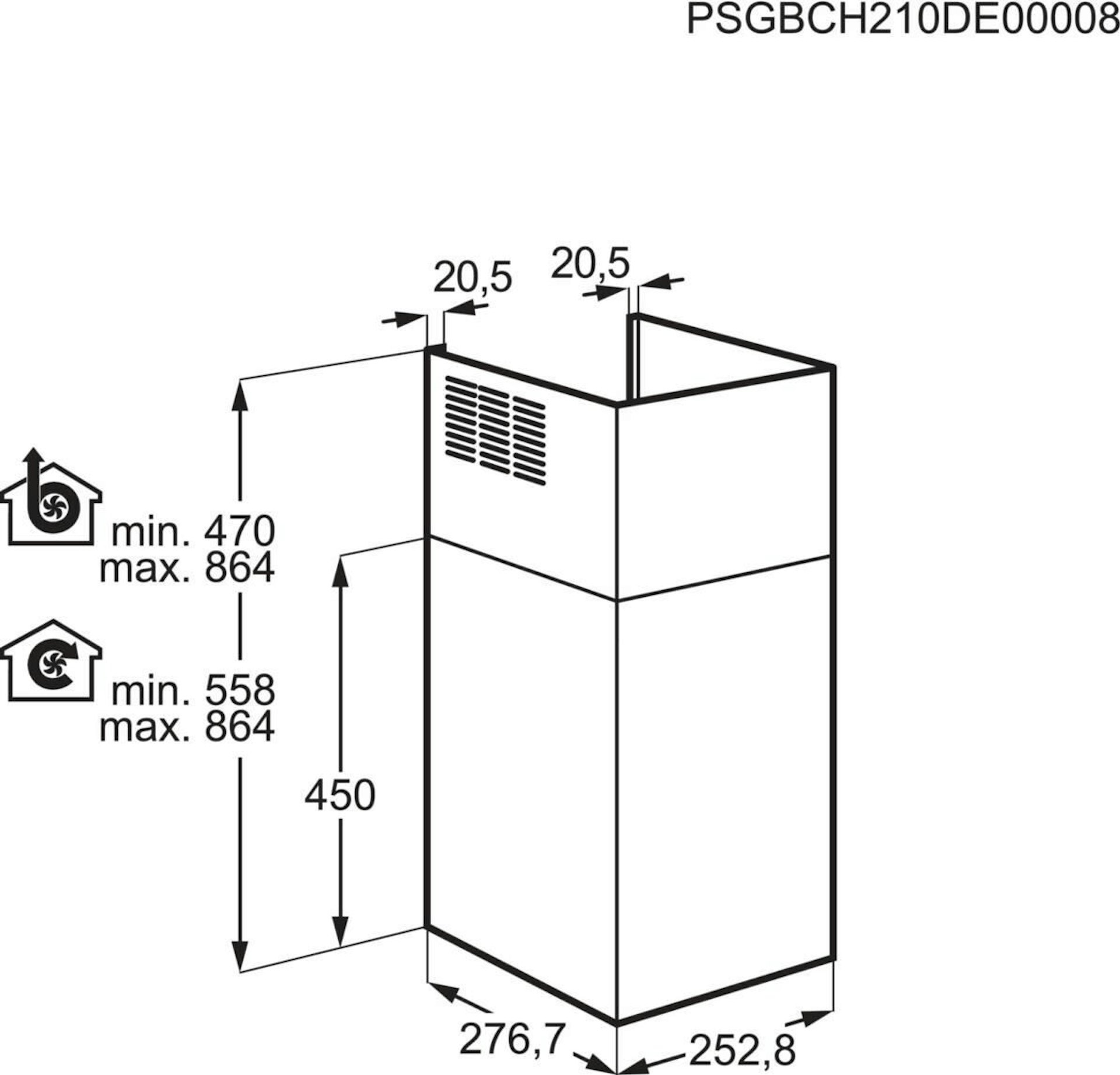 De schoorsteenkit houdt de esthetiek in stand en verwijdert tegelijkertijd ongewenste dampen uit de keuken. Het werkt vooral goed wanneer u de kap in de afzuigstand wilt gebruiken, maar is ook bruikbaar voor de recirculatiestand.
