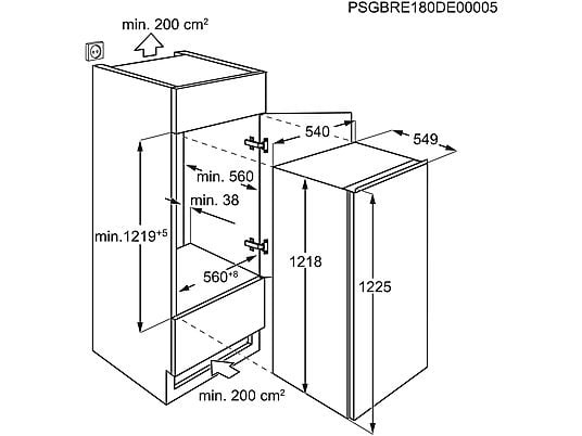 Inbouwmaten (H x B x D) 1225 x 560 x 550 mm