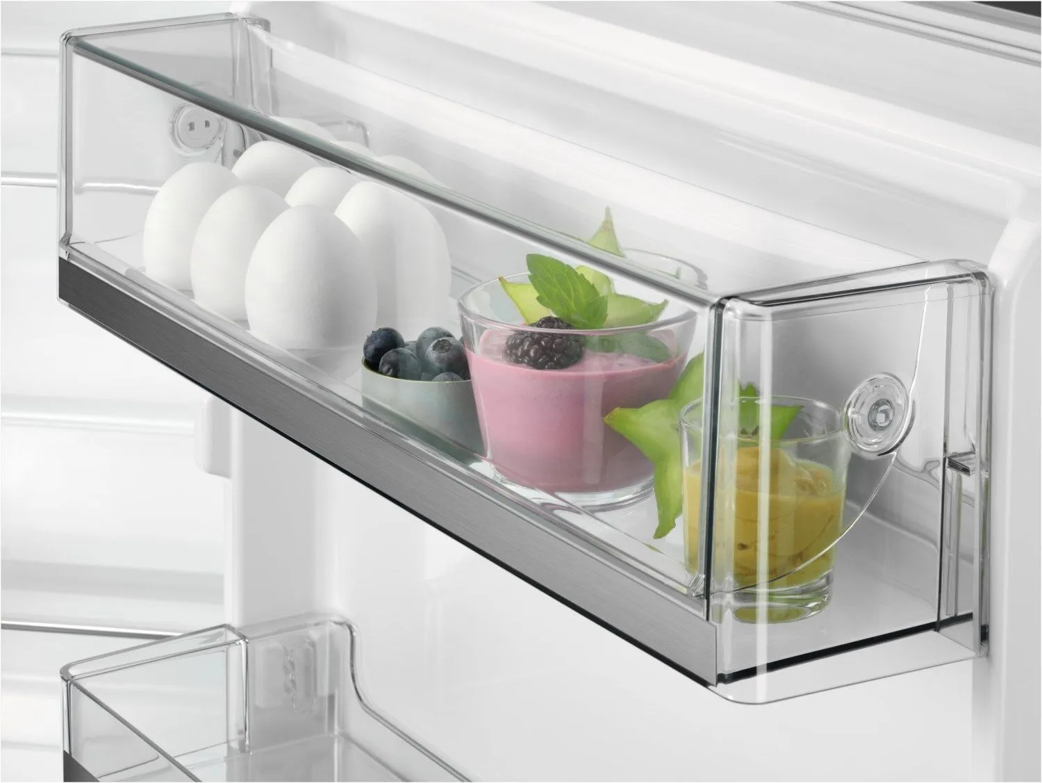 Een ruime groentelade over de volledige breedte waarin u alles kunt opbergen wat u koopt. Zelfs de ongebruikelijk gevormde, langere groenten passen er nu gemakkelijk in. Van komkommer tot bleekselderij, alles vindt gemakkelijk een plekje in dit groentevak.