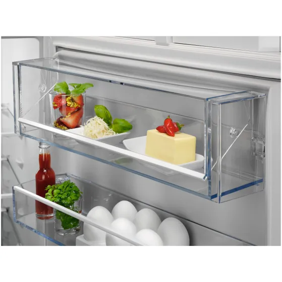 Meer overzicht, minder zoeken. Dankzij de ExtraZone verdeel je je koelkast logisch en houd je ingrediënten perfect gescheiden. Efficiënt koken begint hier.
