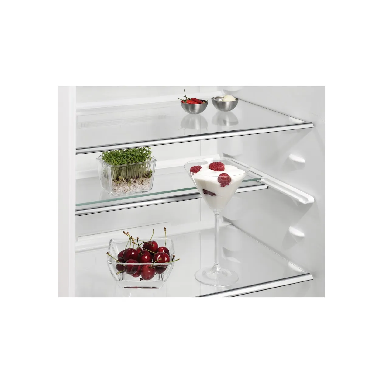Deze innovatieve koelkast met OptiSpace biedt veel opbergmogelijkheden, en veel ruimte tussen de schappen. De laden kunnen allemaal gemakkelijk losgemaakt en weer vastgemaakt worden, voor moeiteloos en handig opbergen.