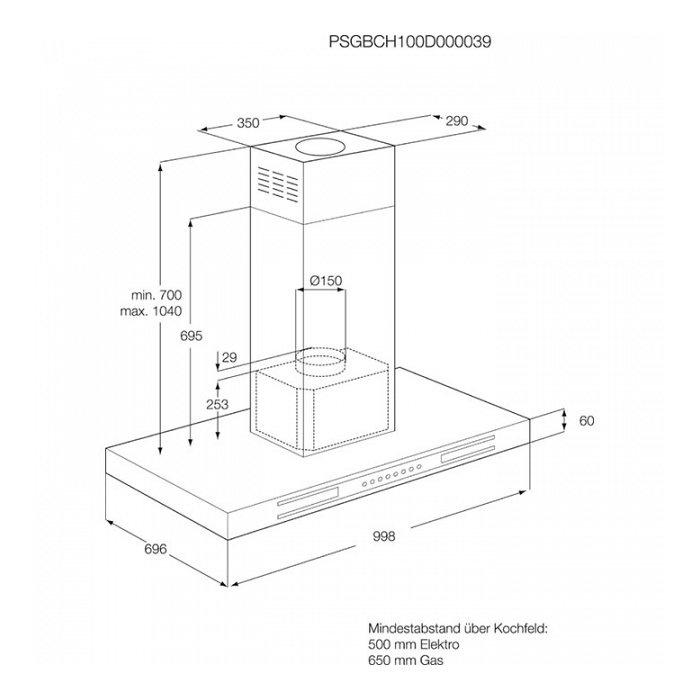 Afmetingen hxbxd (mm) 760 x 998 x 696