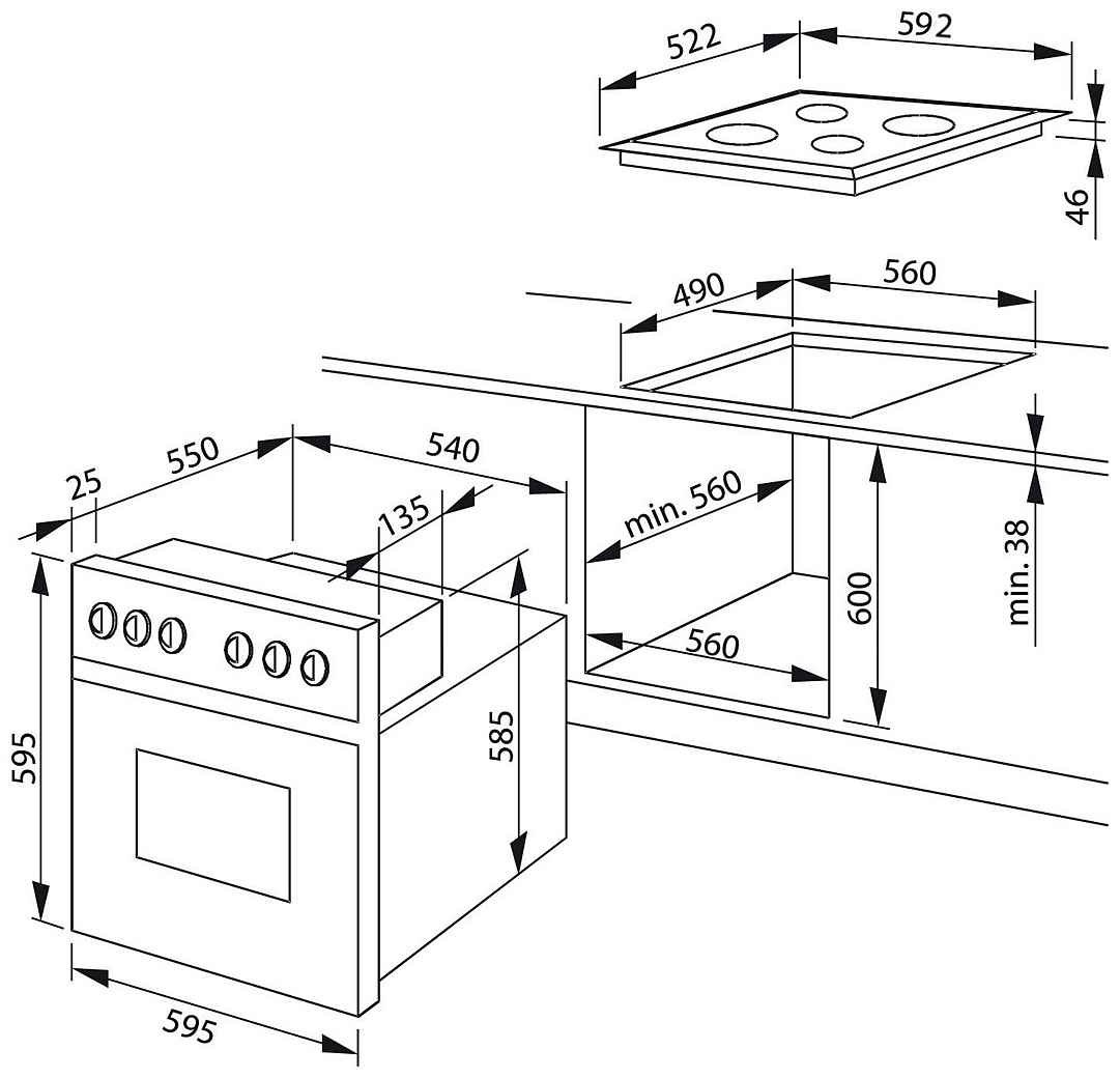 Minimale nishoogte oven: 56 cm