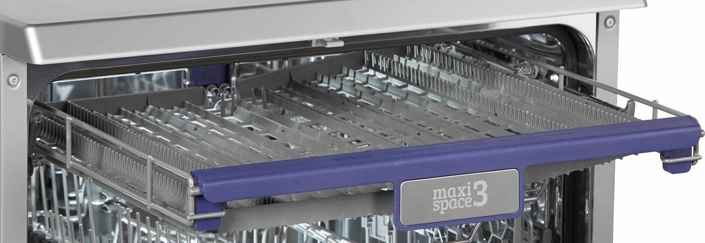 Interieur: Roestvrij staal, flexibele besteklade, in hoogte verstelbare bovenkorf, inklapbare roosters