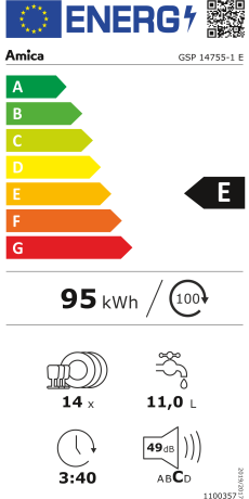 Met slechts 11 liter waterverbruik in het eco-programma en energie-efficiëntieklasse E wast u op een duurzame manier. Het geluidsniveau van 49 dB zorgt voor een rustige keukenomgeving.
