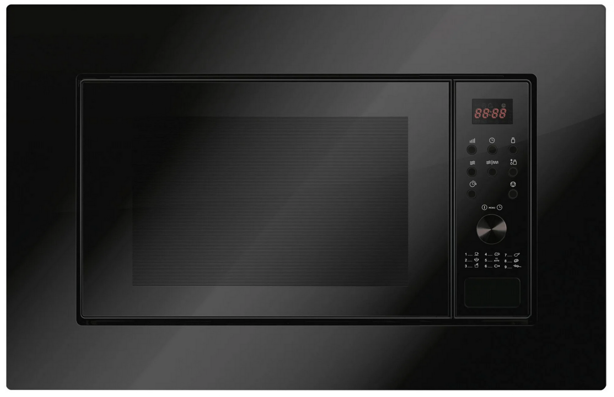 Zwarte inbouw magnetron met 900W vermogen en 9 automatische programma’s