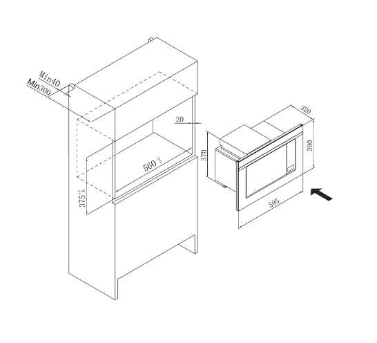 80250 | Inbouw magnetron | Zwart | Nis 39
