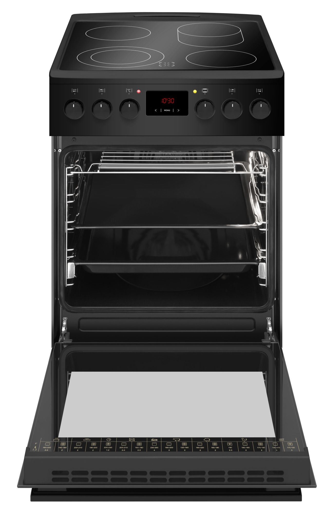 De driedubbel glazen ovendeur houdt de buitenkant koel. Zo voorkom je verbrande handen en kook je veilig, ook in een druk huishouden.