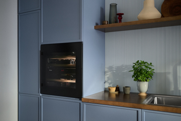 De donker getinte glazen deur beschermt je wijn tegen schadelijk UV-licht. In combinatie met energiezuinige LED-verlichting creëert dit een omgeving die vergelijkbaar is met een traditionele wijnkelder: donker, koel en stabiel.