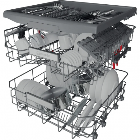 Het vaste derde rek is ideaal voor klein bestek en keukengerei.