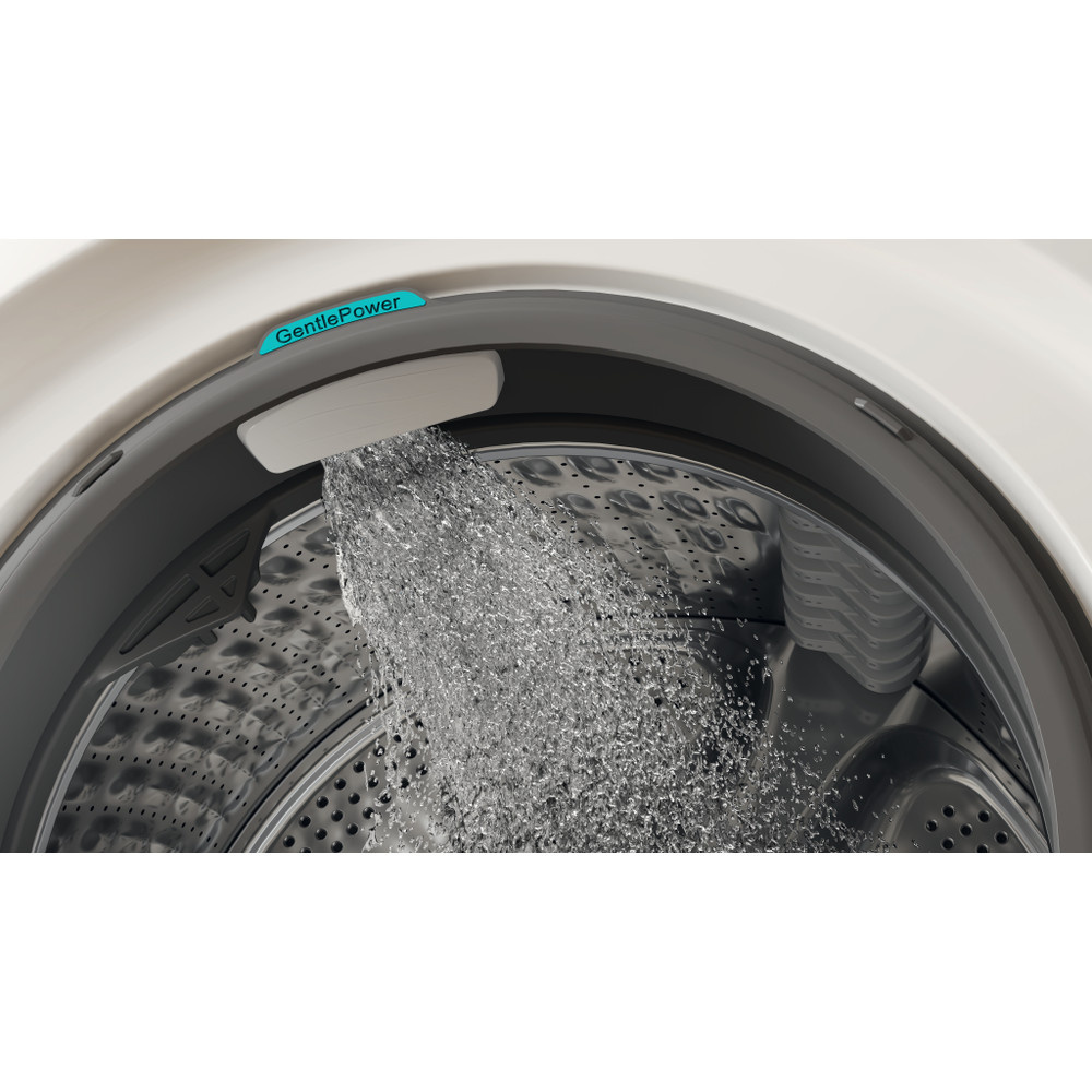 GentlePower-technologie zorgt voor uitstekende reinigingsprestaties en bespaart tegelijkertijd tot 65% energie en 59% water*. Wanneer GentlePower wordt geactiveerd, komt er een waterstroom uit de bovenkant van de trommel die gelijkmatig over de kledingstukken wordt verdeeld: het resultaat is een grondige wasbeurt die prestaties en efficiëntie garandeert. * Getest op ECO 40-60 cyclus met en zonder GentlePower en Load Detect.