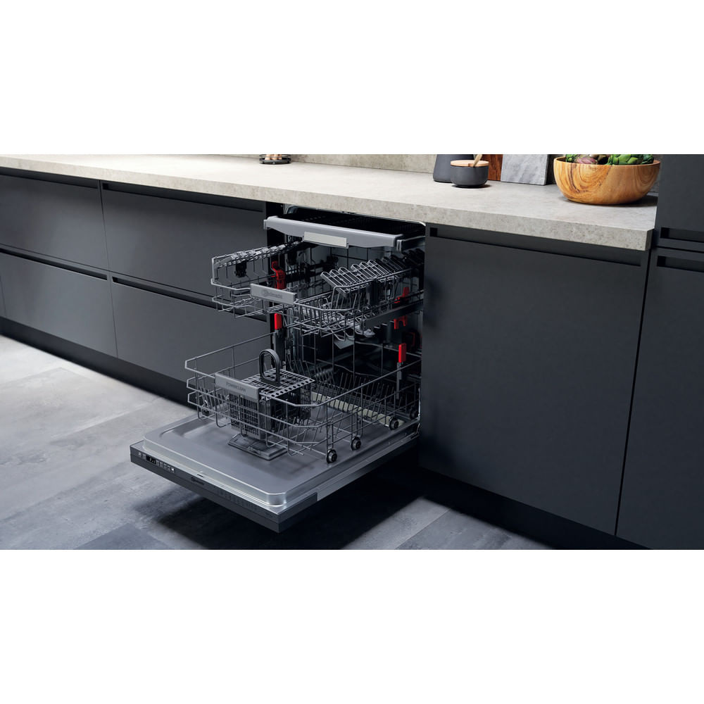 De vaatwasser biedt plaats aan tot 14 couverts, met een efficiënt ontworpen interieur dat maximale ruimte en flexibiliteit biedt voor al je servies en kookgerei.
