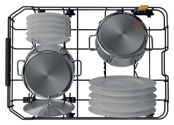Effectieve hogedrukstralen pakken hardnekkig vuil aan. Dankzij de speciale houders kunnen potten, pannen en ovenschalen rechtop worden geplaatst, waardoor de laadcapaciteit in de onderste korf wordt vergroot.