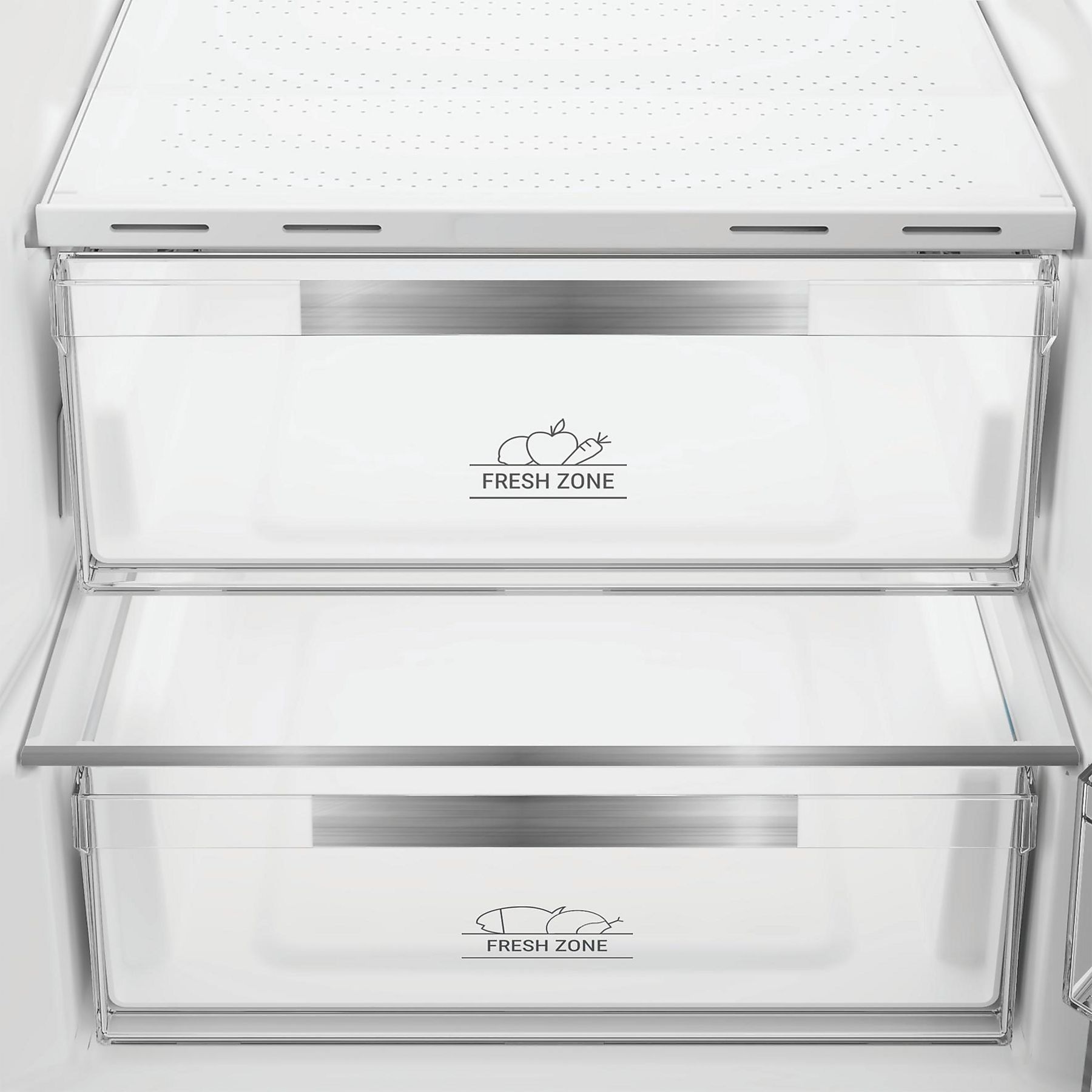 Handmatig ontdooien is verleden tijd. Dankzij Total No Frost wordt de lucht in het vriesgedeelte continu gecontroleerd en gelijkmatig verdeeld. Overtollig vocht wordt afgevoerd via een speciaal kanaal, waardoor ijsvorming geen kans krijgt. Dat bespaart tijd, energie en onderhoud.
