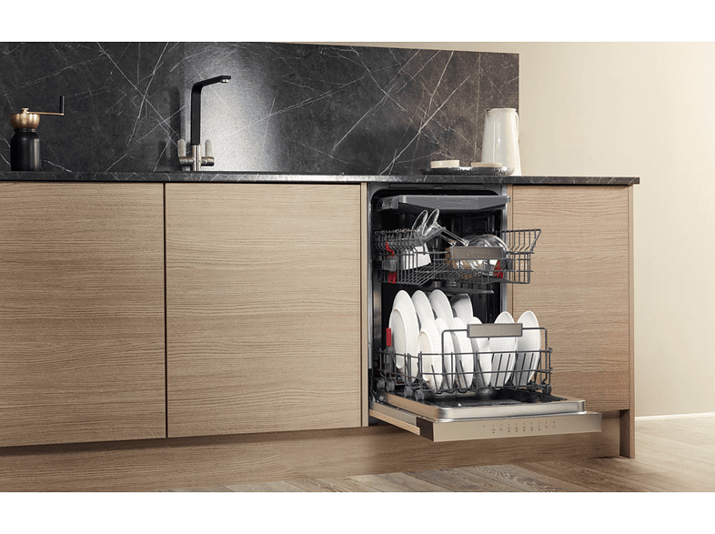 De speciale besteklade bovenin de vaatwasser bespaart ruimte en is flexibel in te richten, ook handig voor langer bestek.