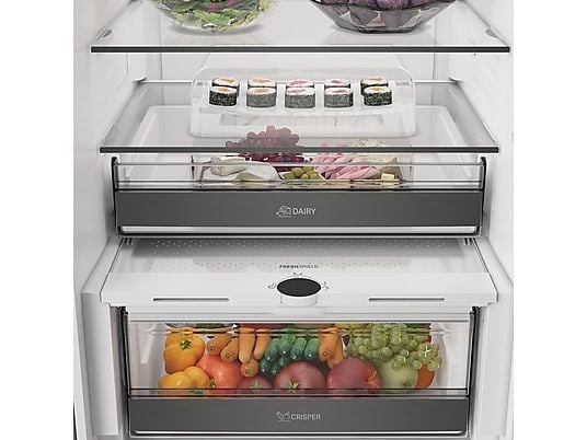 De FreshShield technologie creëert de ideale balans tussen temperatuur en luchtvochtigheid. Groente en fruit blijven langer vers, knapperig en vol smaak.