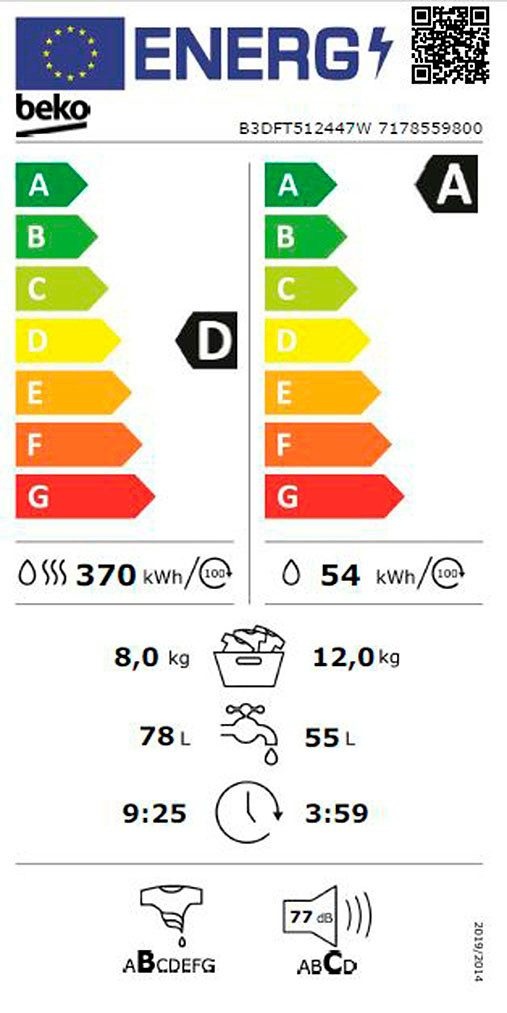 B3DFT512447W | wasdroogcombinatie | 12 - 8 kg