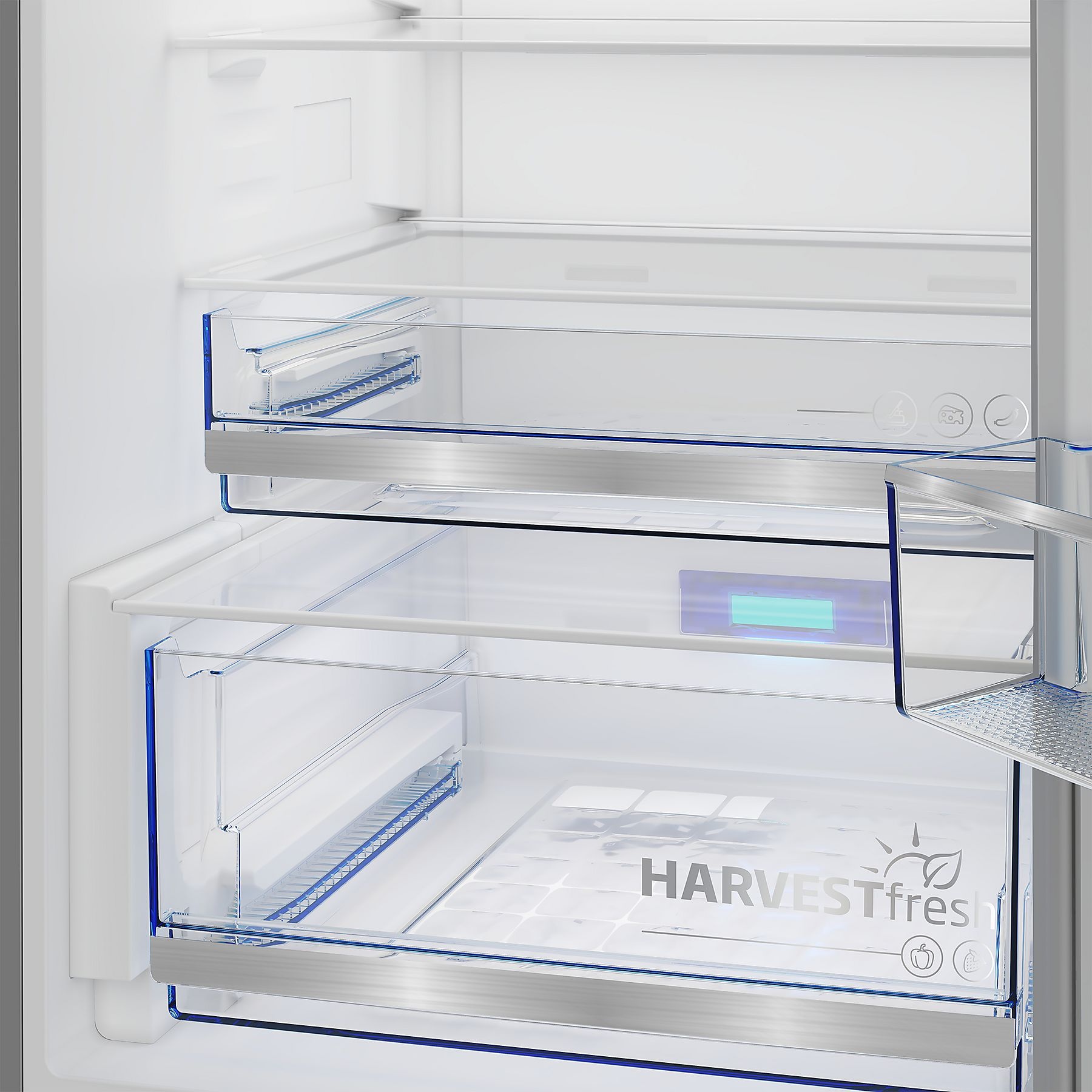 Dankzij HarvestFresh blijven vitaminen in groente en fruit langer behouden. AeroFlow zorgt voor een gelijkmatige luchtcirculatie en stabiele temperatuur in de hele koelkast.