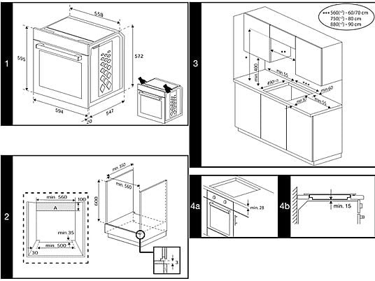 Nisafmetingen kookplaat 560 × 28 × 490 mm