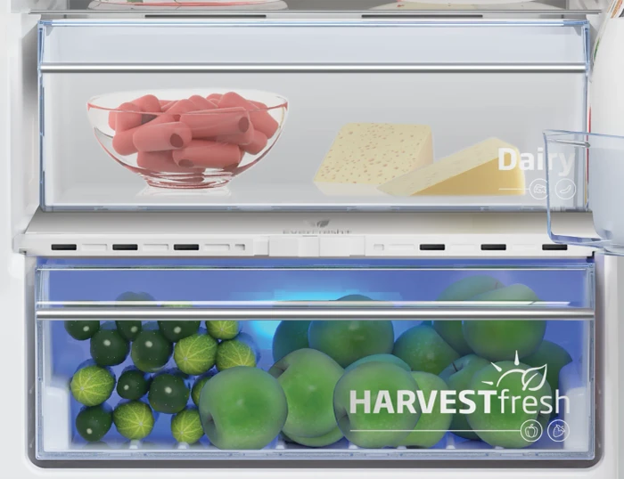 Vitamines in fruit en groenten gaan niet langer verloren door koeling. De 3-kleurentechnologie van HarvestFresh bootst de natuurlijke 24-uurs zoncyclus na in de groentelade. Zo blijven vitamines langer behouden. Deze unieke technologie zorgt ervoor dat je langer geniet van voedzame producten en ondersteunt een gezondere levensstijl.