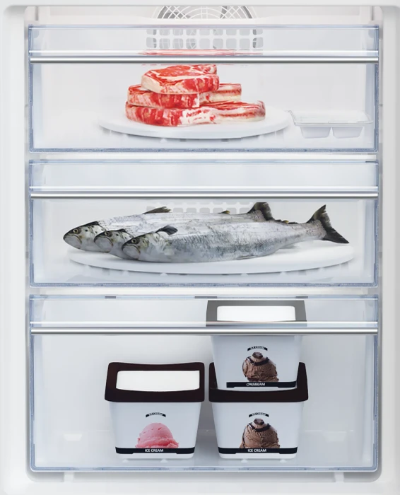 Dankzij het NoFrost-koelsysteem wordt vocht actief afgevoerd, waardoor ijs- en rijpvorming geen kans krijgt. Dat betekent: altijd een ijsvrije vriezer, constant lage energieprestaties en geen tijdverlies meer aan handmatig ontdooien. Kortom: maximale gemak, minimale moeite.