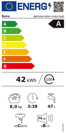 BMFH3WFO8741 | Wasmachine | 8 kg | A | SteamCure