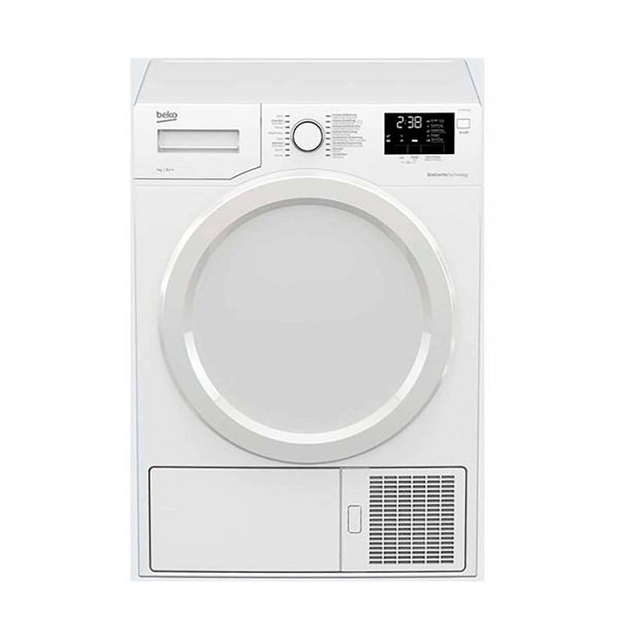 De Beko DS7433PXW A++ warmtepomdroger droogt grote hoeveelheden handdoeken, beddengoed of de dagelijkse was met 1 van zijn 16 droogprogramma's. En dat met slechts 209 kWh per jaar! Zodra je het wasgoed in de trommel hebt gelegd, kies je 1 van de 16 programma's. Zelfs je schoongewassen sportkleding, shirts en overhemden mogen zonder zorgen in de trommel. Handig, want zo weet je zeker dat al je wasgoed droog en mooi uit de trommel komt. De antikreukfase van de Beko wasdroger vermindert hardnekkige kreukels in je kleding; je bent dus sneller door het strijkgoed heen.Wat betreft bediening is de Beko DS7433PXW zeer gemakkelijk. Met de draaiknop kies je het droogprogramma, waarna je met de startknop het programma start. Verder is de machine voorzien van een RVS Aquawave trommel en Optisense technologie. De OptiSense-technologie in jouw Beko warmtepompdroger optimaliseert de droogcyclus, dus je hoeft niet te gissen hoelang het duurt voor je kleren droog zijn. 3 slimme sensors laten je kiezen hoe droog je je kleren wilt hebben en stoppen de droger zodra dat niveau van droogheid is bereikt. Vochtig of droog, jouw wil is wet. En op het grote display zie je precies hoe lang de wasdroger nog bezig is. En door de kinderbeveiliging te activeren voorkom je dat kleine vingertjes de instellingen kunnen veranderen.