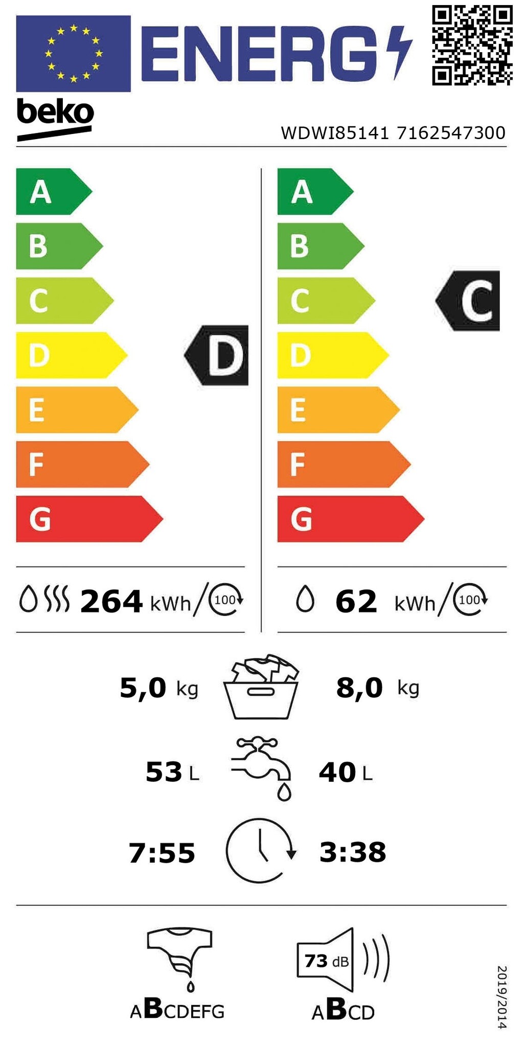 Energie-efficiëntieklasse was-droogcyclus D