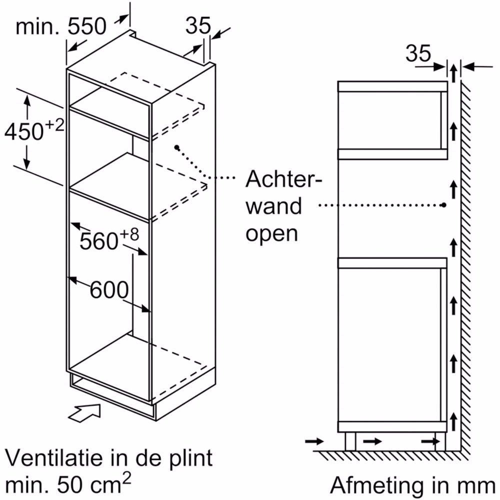 De inbouwmagnetron voor een 45 cm nis: voor het extra snel ontdooien, opwarmen en bereiden van gerechten.