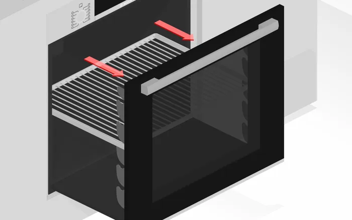 Met de ovenwagen is het gemakkelijk om gerechten in en uit de oven te laden. U hoeft niet langer in de hete oven te reiken om de gaarheid te controleren.