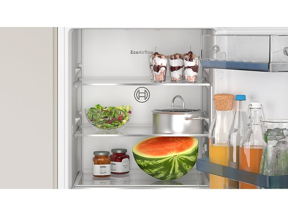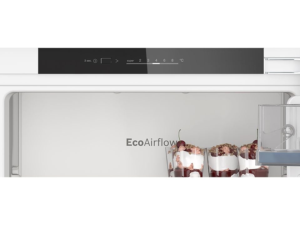 Wist je dat een ongelijkmatige temperatuurverdeling in je koelkast ten koste kan gaan van smaak en versheid? EcoAirflow verdeelt de luchtvochtigheid en temperatuur continu gelijkmatig, waardoor je etenswaren langer vers blijven.