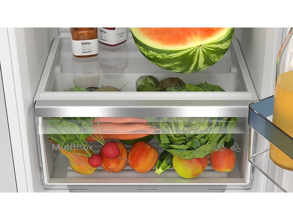 Wil je een ruime koelkast die niet te veel ruimte in beslag neemt in je keuken? De Bosch inbouwkoelkast KIR21VFE0 doet precies wat ze belooft. Dankzij het ruime ontwerp vind je meteen waar je naar op zoek bent en kun je alle producten precies zo opbergen zoals jij wilt. Verse groente en fruit bewaren is nog nooit zo makkelijk geweest. De MultiBox XXL biedt extra ruimte voor al je verse boodschappen. Ideaal voor wanneer je groots groente wil inslaan, of bijvoorbeeld gekoelde watermeloen wil meenemen naar een picknick in het park.