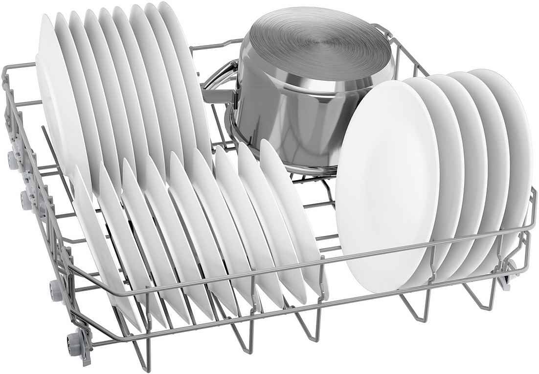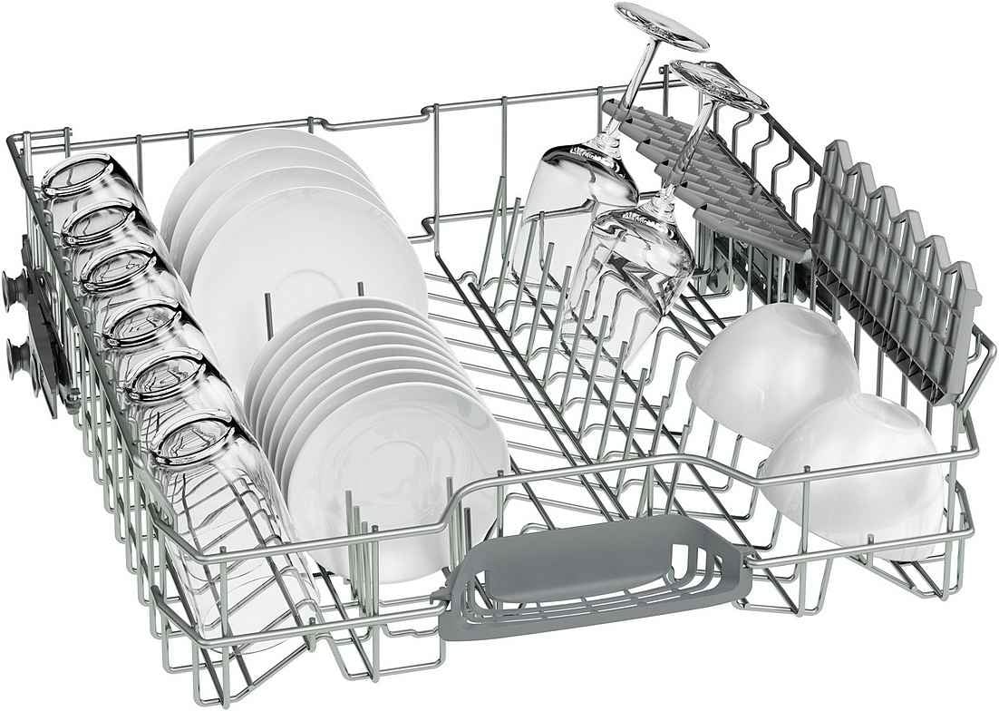 Meer ruimte wanneer je het nodig hebt. Met Rackmatic verstel je de bovenkorf eenvoudig in drie hoogtes, zelfs wanneer deze beladen is. Ideaal voor hoge glazen, grote schalen of extra hoge borden.