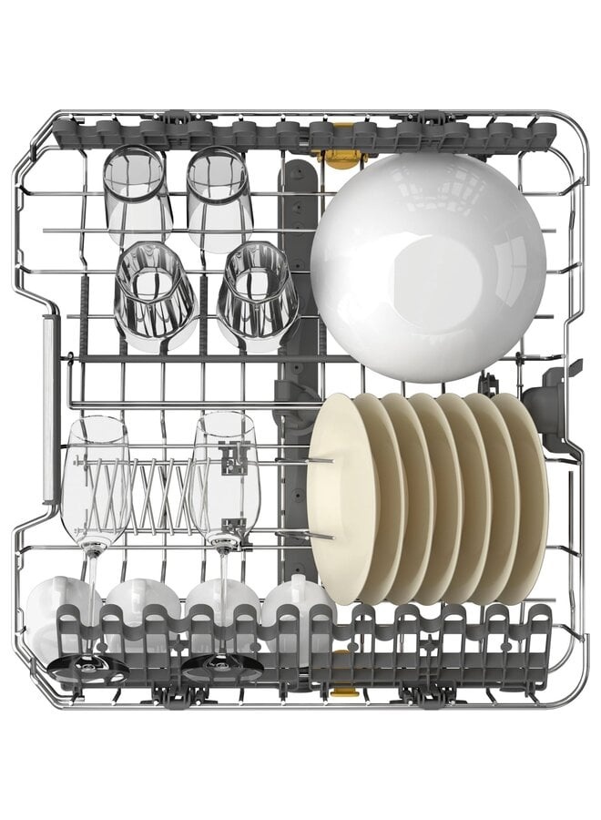Het 10%** grotere MaxiSpace-interieur biedt meer ruimte en flexibelere laadmogelijkheden - ondanks standaard buitenafmetingen. Dankzij de 35 mm hogere binnenruimte kunnen pizzaborden*** (32 cm) tegelijkertijd in de onderkorf worden geplaatst en dessertborden (19 cm) in de bovenkorf. Meer ruimte met hetzelfde verbruik.