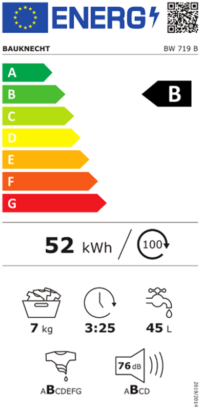 Energieverbruik per 100 gebruikscycli 52 kWh