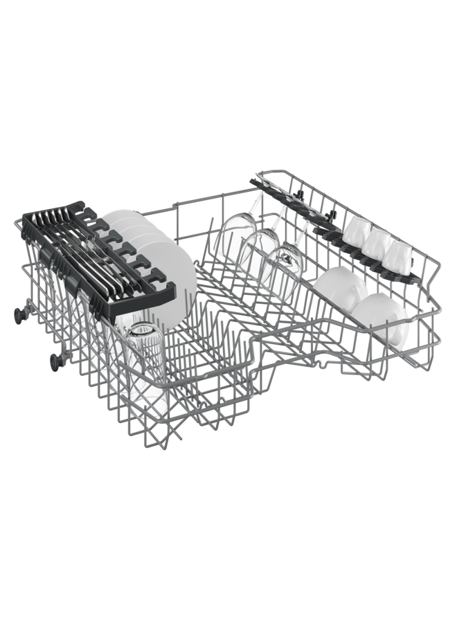 De bestekmand is een slimme uitvinding, maar die zit vaak in de weg als je een grote pan in de onderkorf probeert te plaatsen. De verschuifbare bestekmand lost dit probleem op omdat hij vrij naar links en rechts kan bewegen, waardoor er ruimte ontstaat voor die grotere voorwerpen.